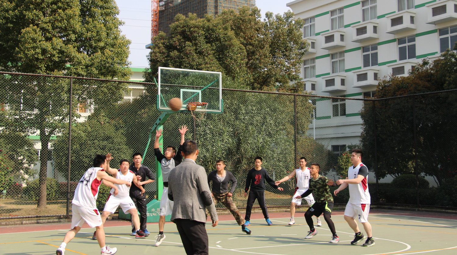 鄞州消防大隊實力不可小視,而我隊是由兩個不同的單位臨時組建,平時一起訓練機會不多,默契和配合熟練度不夠,所以比賽打得比較辛苦,不過后來我隊慢慢恢復狀態,逐漸拉近比分。隊員們一次次努力的拼搶,一個個果敢的突破,一手手流暢的傳球,都讓在場的每個人感受到了運動的氣息、拼搏的魅力和團隊的風采!通過這次比賽,不僅加深了彼此的溝通和交流,收獲了友誼,更是展現了萬華建設拼搏、團結、進取的精神面貌。